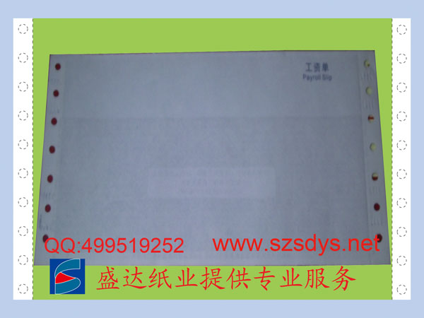 工藝:工資條密碼紙為一份三聯(lián)無碳紙,紙質(zhì)有55克及80克任客戶選擇,工資條密碼紙版面內(nèi)容可按客戶要求排版,印刷上單位標(biāo)志及單位名稱中英文、注意事項(xiàng)等要求內(nèi)容。常用尺寸為:93*217mm、140*241mm。四周通過有色膠粘接、正反面通過印刷保密底紋、保密效果好。通過對(duì)電腦紙涂膠粘合及相關(guān)部位的增感油墨或減感油墨的印刷,實(shí)現(xiàn)員工薪酬明細(xì)信息的保密。有多種版式、保密花紋可選用,通過針式打印機(jī)套打使用。工資條密碼紙具有無碳復(fù)寫、電腦連續(xù)打印、私人信息保密功能。為確保工資條密碼紙?jiān)趥鬟f或郵寄時(shí)的保密,收件人必需沿三邊刀位撕開此產(chǎn)品,方能審閱內(nèi)里的資料。