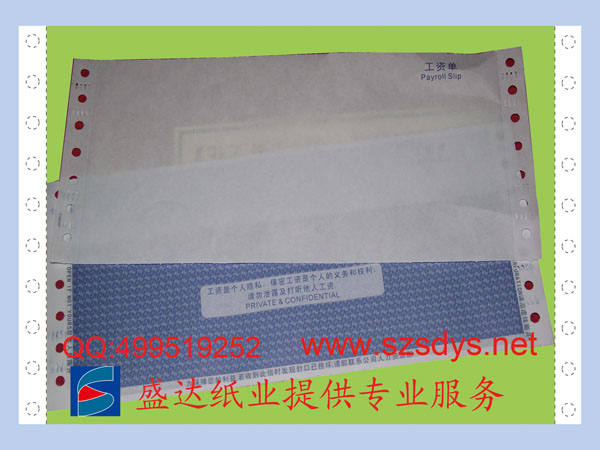 工藝:工資條密碼信封為一份三聯(lián)無碳紙,紙質(zhì)有55克及80克任客戶選擇,工資條密碼信封版面內(nèi)容可按客戶要求排版,印刷上單位標志及單位名稱中英文、注意事項等要求內(nèi)容。常用尺寸為:93*217mm、140*241mm。四周通過有色膠粘接、正反面通過印刷保密底紋、保密效果好。通過對電腦紙涂膠粘合及相關部位的增感油墨或減感油墨的印刷,實現(xiàn)員工薪酬明細信息的保密。有多種版式、保密花紋可選用,通過針式打印機套打使用。工資條密碼信封具有無碳復寫、電腦連續(xù)打印、私人信息保密功能。為確保工資條密碼信封在傳遞或郵寄時的保密,收件人必需沿三邊刀位撕開此產(chǎn)品,方能審閱內(nèi)里的資料。
