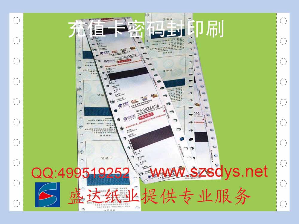 深圳盛達(dá)印刷廠專業(yè)聯(lián)通密碼充值券印刷。密碼封。產(chǎn)品保密函紙,產(chǎn)品信息密碼函紙。數(shù)據(jù)保密信封,數(shù)字密碼信封,密封函紙 。本系列產(chǎn)品適用于各企業(yè)產(chǎn)品,產(chǎn)品,商品,數(shù)據(jù),數(shù)據(jù),密碼等重要資料內(nèi)容的傳遞及保護(hù)。提供多種規(guī)格、1至3聯(lián),具有無碳復(fù)寫、電腦連續(xù)打印、私人信息保密功能。為確保私隱資料及機(jī)密文件在傳遞或郵寄時(shí)的保密,收件人必需沿三邊刀位撕開此產(chǎn)品,方能審閱內(nèi)里的資料。如薪俸表,保密薪資單,工資袋及私人密碼,銀行密碼信封。企業(yè)員工的保密薪資單(袋)、銀行卡配套的密碼信封,通過對(duì)電腦紙涂膠粘合及相關(guān)部位的增感油墨或減感油墨的印刷,實(shí)現(xiàn)薪資及密碼信息的保密。有多種版式、保密花紋可選用,也可按客戶要求設(shè)計(jì)制作,美觀適用。電腦直接打印薪資、密碼,效率高。需撕開密封口方可閱讀薪資、密碼內(nèi)容,保密性強(qiáng),全國提供發(fā)貨上門,最優(yōu)質(zhì)的誠信服務(wù)!