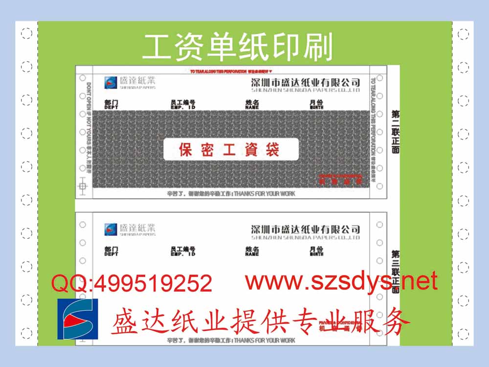 工藝:工資密碼紙為一份三聯(lián)無碳紙,紙質(zhì)有55克及80克任客戶選擇,工資密碼紙版面內(nèi)容可按客戶要求排版,印刷上單位標志及單位名稱中英文、注意事項等要求內(nèi)容。常用尺寸為:93*217mm、140*241mm。四周通過有色膠粘接、正反面通過印刷保密底紋、保密效果好。通過對電腦紙涂膠粘合及相關(guān)部位的增感油墨或減感油墨的印刷,實現(xiàn)員工薪酬明細信息的保密。有多種版式、保密花紋可選用,通過針式打印機套打使用。工資密碼紙具有無碳復(fù)寫、電腦連續(xù)打印、私人信息保密功能。為確保工資密碼紙在傳遞或郵寄時的保密,收件人必需沿三邊刀位撕開此產(chǎn)品,方能審閱內(nèi)里的資料。